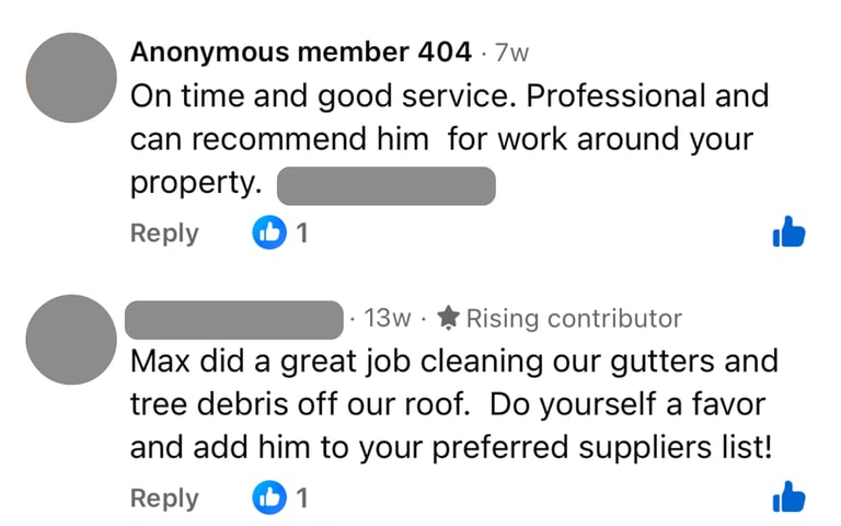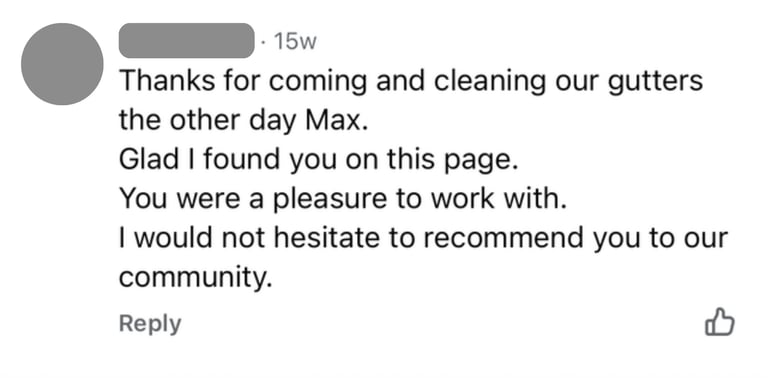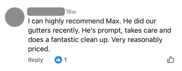 I pride myself on my workmanship, and will never leave a job until it's spotless. Most importantly, I check that your downpipes flow, as there's no point cleaning the gutters if they just keep flooding!